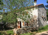 This is a stone farmhouse with a difference – instead of encountering the usual dark rustic décor upon entering, the owner-artist has painted the interior in his own colorful style - this gives it an inimitable character all its own. The house was chosen by Elle Decor as one of the top 10 houses in Croatia according to its interior design. The front door opens into a charming sitting room with corner sofa. Kitchen/diner equipped with 4 ring electric hob, oven, fridge and stone sink. Air conditioning. Bathroom, WC etc and washing machine. Up 13 stone steps is the first floor landing off which are two double bedded rooms. The double beds are slightly narrower than normal, in common with Istrian practice. Hidden away down a quiet country lane in deepest Central Istria, the peace and privacy one finds here are the other hallmarks of this property. The friendly owners live next door but this does not detract from the sense of complete tranquility, even when enjoying an al fresco meal at the stone table in the garden. 11 kilometers away is the ancient town of Pazin where essential shops, banks and chemists are to be found. These aside, the town’s castle is known as the most beautiful and best preserved medieval fort in Istria and Pazin’s Pit, an abyss 130 meters deep, are but two of this town’s attractions that provide very interesting diversions.